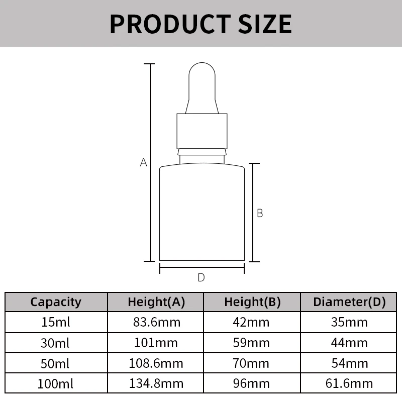 Capacity: 15ml, 30ml, 50ml, 100ml