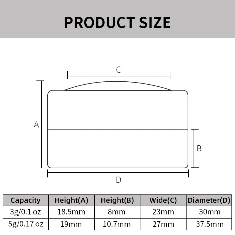 Capacity: 3g (0.1 oz), 5g (0.17 oz)