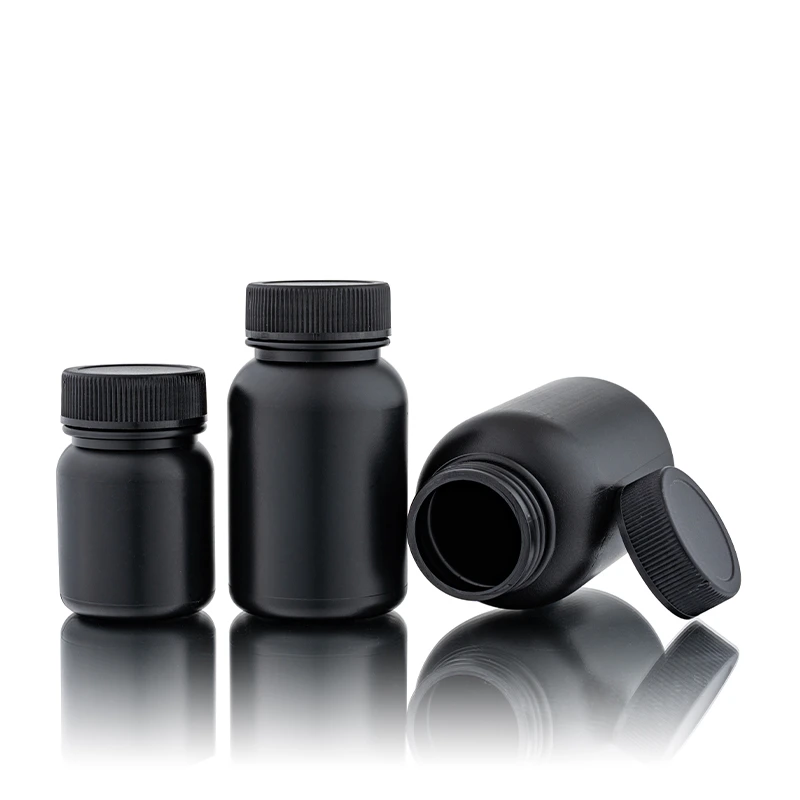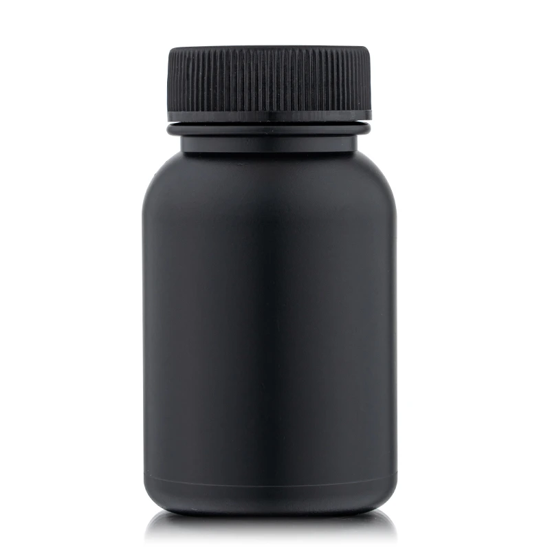 Durable black HDPE empty bottle with a wide mouth, perfect for storing and protecting solid nail gels.